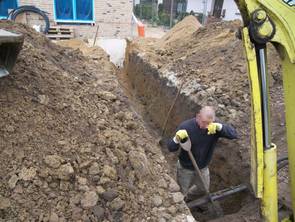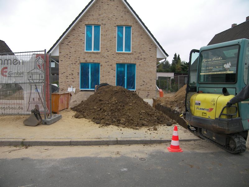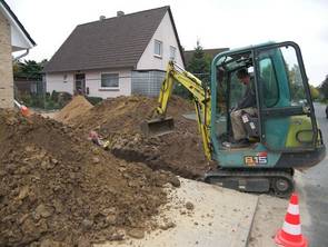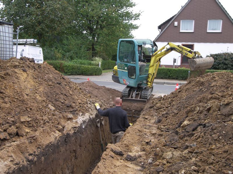 Der Graben ist fertig, die Verlegearbeiten für Strom, Gas und Wasser können beginnen