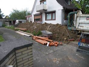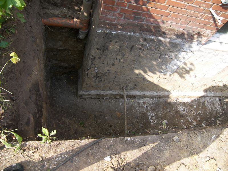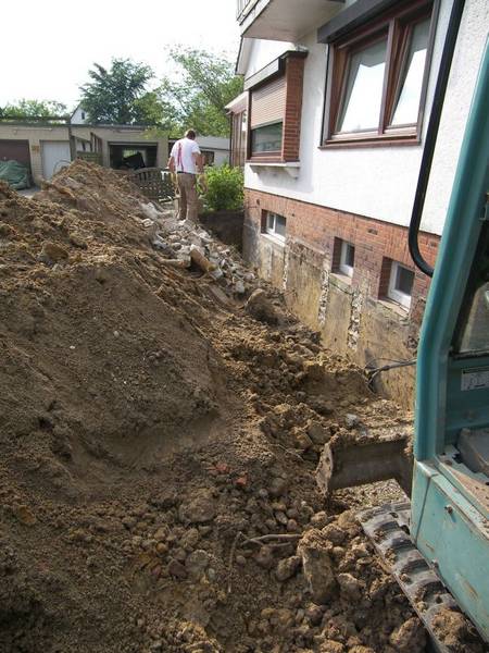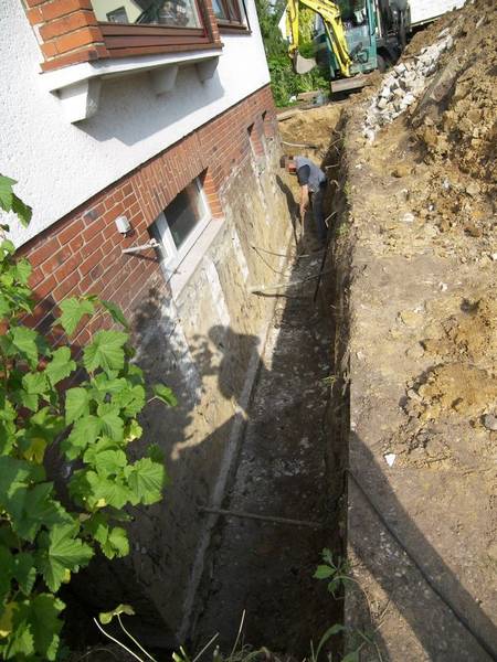 Die Wand ist freigelegt, jetzt können die Reinigungs- und Abdichtungsarbeiten beginnen.