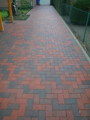 Pflasterung im Anschluß an eine wassergebundene Wegedecke