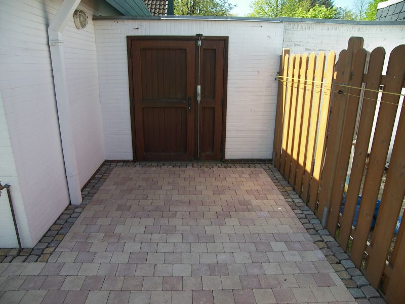 Das Betonpflaster ist verlegt, jetzt werden die Steine paßgenau zugeschnitten