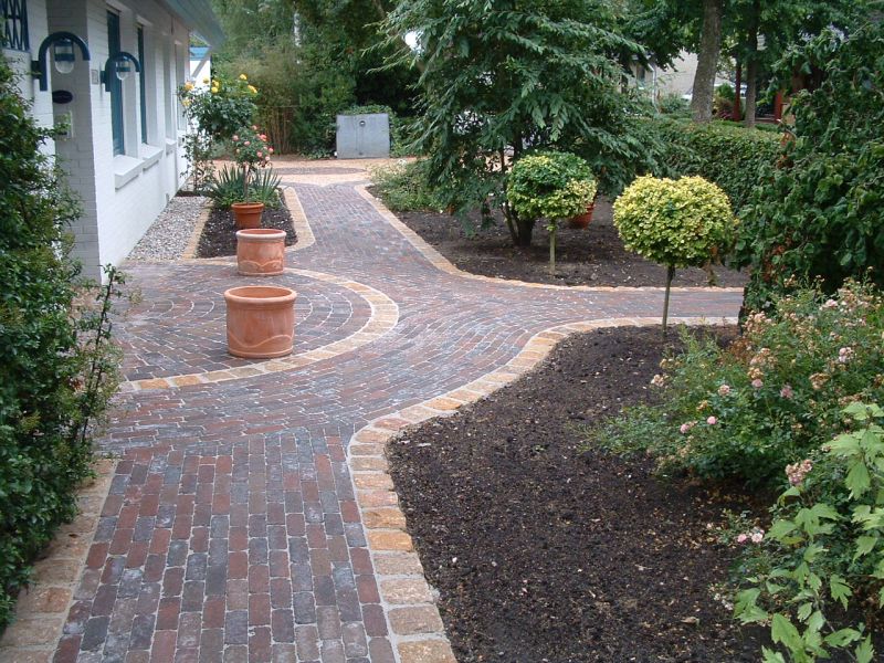 Elegante Wegführung vor dem Eingang des Hauses