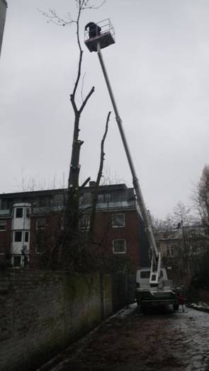 Die Aufastung ist erfolgt, nun wird der Stamm stückweise abgetragen